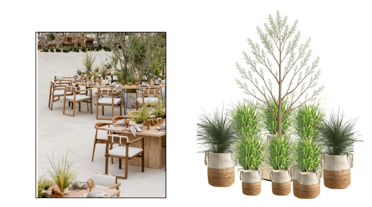 The upsides to grass are infinite - there are so many varieties to feed many theme allowing grass to be multi-faceted while affordable. Our favorite grasses flower - such as White Fontaine, Cloud Grass and Pink Muhly Grass - all which give off a feather like flower in their prime, creating an ethereal look of whimsy while giving grounding. organic vibes at from their roots.